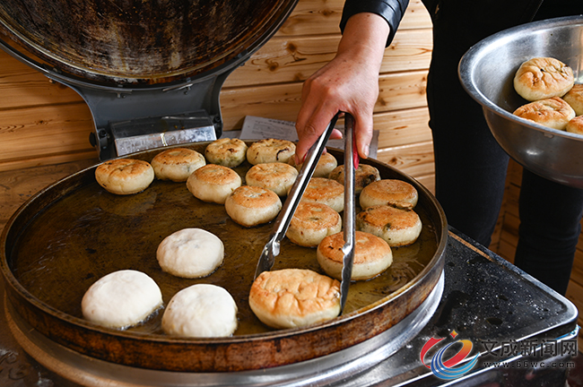 同样来自温州的张先生也在活动现场品尝了伯温烧饼、谢记绿豆饼等特色小吃。他说:“伯温烧饼以前就听说过,今天过来尝一下,感觉味道不错,外表金黄,还散发着阵阵的香气。还有这绿豆饼也很好吃,就买几盒回家给我家孩子吃。”