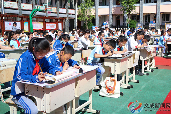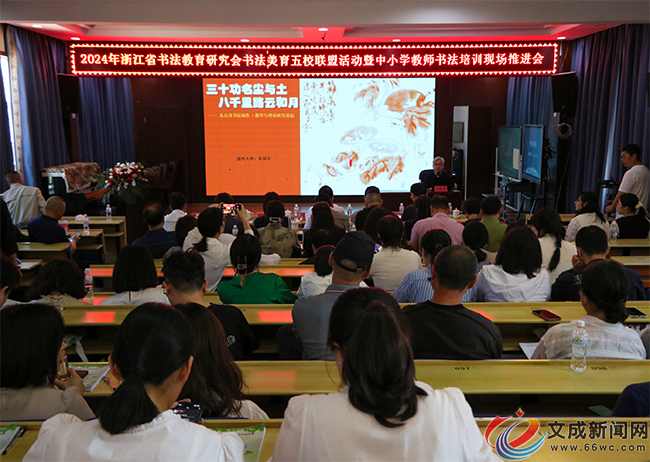 文成新闻网讯(记者 徐露露 郑坚坚)近日,2024年浙江省书法教育研究会书法美育五校联盟活动暨中小学教师书法培训现场推进会在县实验小学举行。此次活动汇聚了全省各地的书法教育工作者、我县各学校书法教育者、县实验小学的师生及家长代表,共同探讨书法美育的未来发展与实践路径。