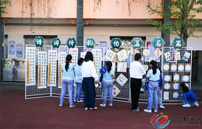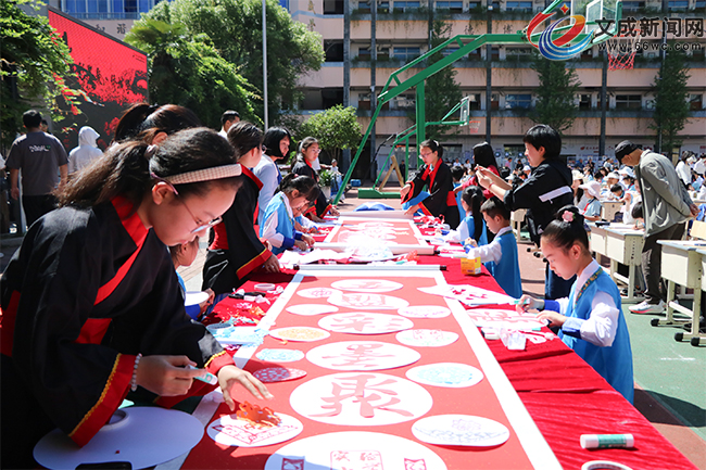 在县实验小学操场,一个个热烈而精彩的热场节目表演轮番上演,现场书法展示环节将气氛推向高潮。上百名书法爱好者们同聚一堂,挥毫泼墨,或楷书工整,或行书流畅,一幅幅精美的书法作品跃然纸上。师生家长们有的神情专注,有的相互交流,一笔一划间,无不透露出对书法的热爱。现场还举行了刘基文化作业展、五校师生书法作品展等展览。
