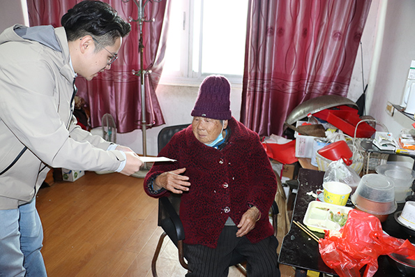 上午11点55分,记者在百丈漈镇篁庄村慰问了周成花老人。