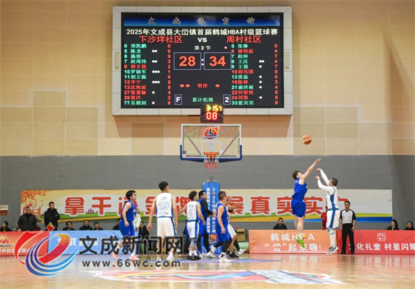 随着球被高高抛向空中,裁判清脆哨音响起,周村社区与下沙垟社区的比赛正式拉开帷幕。控球后卫灵活突破、精准传球;防守队员默契卡位、奋力抢断,每一个动作都尽显拼搏姿态。比分胶着交替上升,场上局势扣人心弦,每一次得分都引发现场雷鸣般喝彩,观众的呐喊声、欢呼声此起彼伏,将赛事热情不断推向高潮。