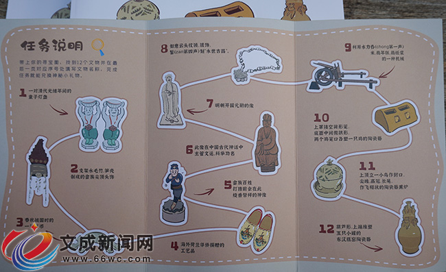 在活动现场,前来参加活动的市民在领取1张寻宝任务图后,就可以沉浸式开启文博体验了。只见大家根据手中的寻宝图,奔走在各文物之间,寻找到所有指定文物,在图册最后一页对应序号处填写文物名称,完成所有任务后,就可以兑换一份神秘文创礼物。