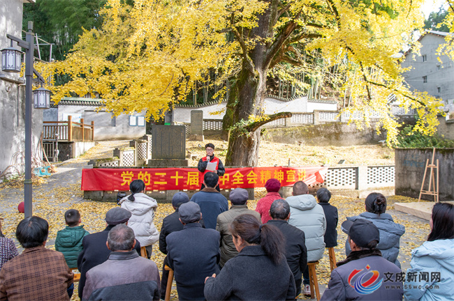 文成新闻网讯(记者 叶厉钦 雷思涵 季向贤) 日前,“鳌源桂山”青年宣讲团走进桂山乡平溪村,在千年银杏树下以一场别开生面的互动式宣讲,将党的二十届四中全会精神化作“家常话”,让政策红利直抵基层、浸润民心。
