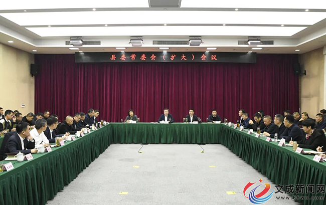 文成新闻网讯(记者 夏季 李友汉 朱伟)12月8日上午,县委常委会召开(扩大)会议,传达学习市委十三届九次全体(扩大)会议精神,研究部署我县贯彻落实意见。县委书记罗招政主持会议,县四套班子领导杨德听、刘金红、郑文东等出席会议。