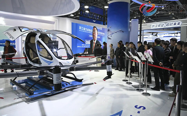 在文成展区,除已亮相的亿航旗舰产品EH216-S外,亿航智能新一代长航程无人驾驶载人航空器VT35首次在博览会亮相,吸引了国内众多参会嘉宾、媒体及公众前来打卡体验。VT35和EH216-S作为载人无人驾驶电动垂直起降航空器,适用于中长和短途交通出行场景。