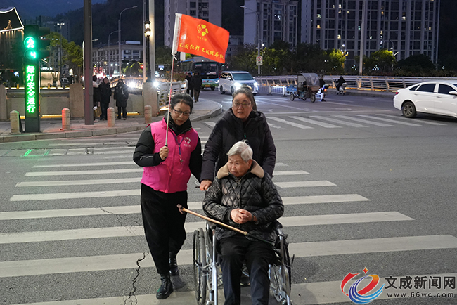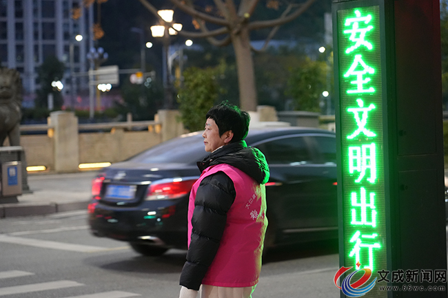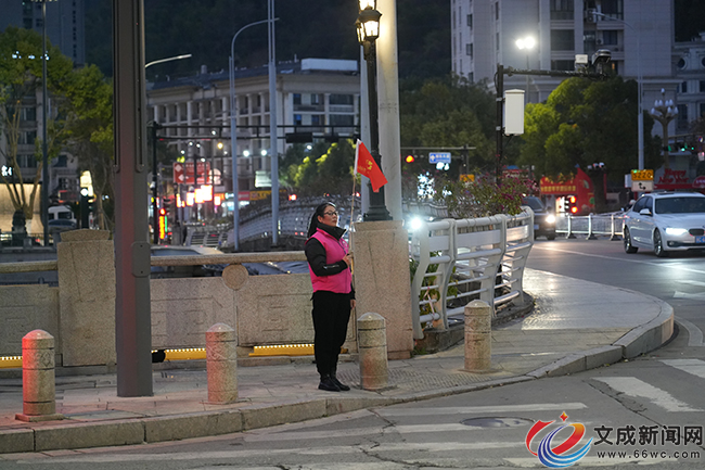 文成新闻网讯(记者 李骏飞 郑坚坚)斑马线前的礼让、路口的有序通行,是城市文明最直观的体现。在文成县城的交通要道上,“鹤城大姐”志愿服务队的身影格外亮眼,她们以志愿之名坚守路口,用耐心劝导守护出行安全,为文明城市创建注入温暖而坚实的力量。