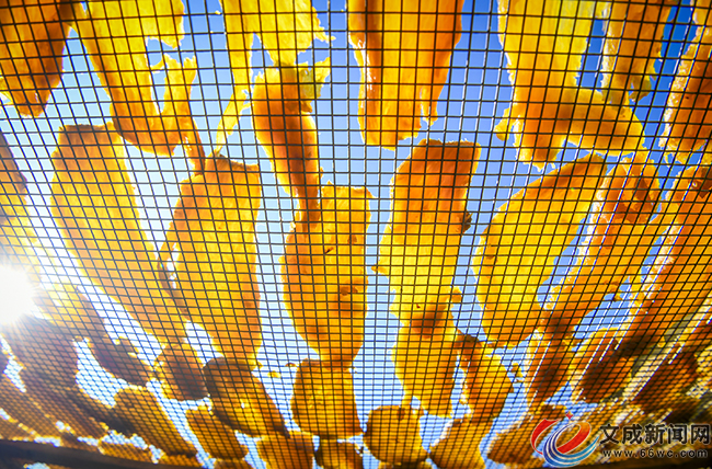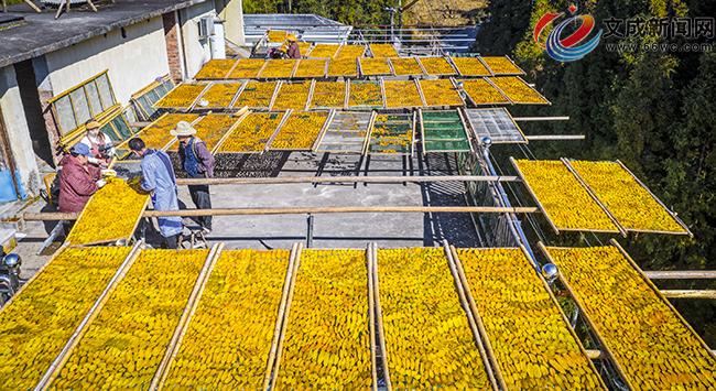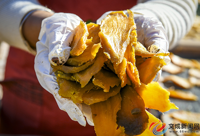 文成新闻网讯(记者 夏林艳 雷思涵 朱伟)晴好少雨、昼夜温差大的冬日暖阳下,黄坦镇严垟村迎来新一季古法番薯干集中晒制与上市。家家户户门前与屋顶的竹架上,整齐铺展着色泽金黄、黄里透红的番薯干,甜香弥漫整个村落,勾勒出一幅“冬忙促增收、小产带大富”的乡村振兴图景。
