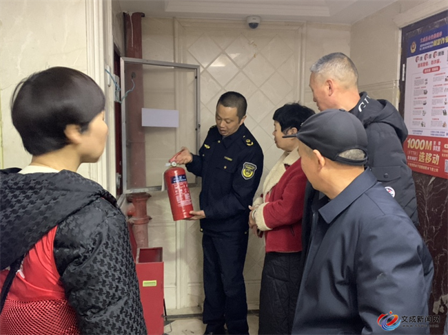 此外,工作人员对楼内灭火器进行了全面检查,逐一查看其压力指示是否正常、是否在有效期内,并现场示范了正确使用方法。工作人员强调,灭火器是扑救初期火灾的重要工具,家庭配备灭火器材并掌握其使用方法,对防范火灾风险至关重要。