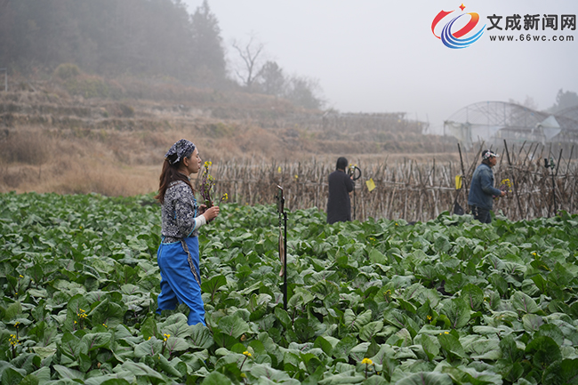 寒意渐浓,但黄坦镇的高山田地里却生机盎然,红菜长势喜人,鲜嫩的菜薹缀着朵朵黄花。农户杨成彬正在田间仔细查看,这片首次试点种植的红菜,承载着他对增收的期待:“红菜心的花青素含量很高,吃起来口感也好,我们今年第一次试种,产量很不错,明年打算规模化种植。”
