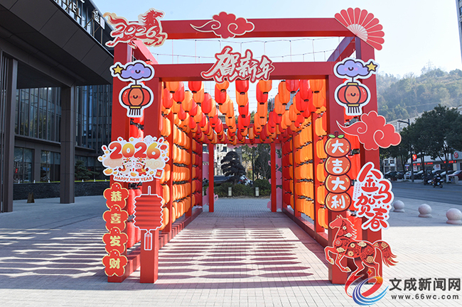 除了书店与金店,文成宾馆前面红灯笼、中国结与马年摆件相映成趣,团圆宴预订也已火热开启;侨汇城的马年主题牌坊、年货市集早早登场。马年元素已融入县城的大街小巷,浓浓的年味里,满是市民对新春的热切期盼。