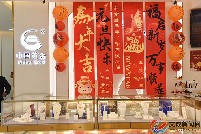 在县前街的中国黄金店内,马年主题黄金饰品被摆在展柜C位,成为热销爆款。记者在现场看到,不少顾客正在柜台前仔细挑选,希望能选一款称心的饰品,为新年讨个好彩头。
