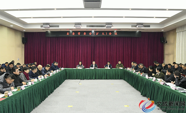 文成新闻网讯(记者 赵鹏鹏 朱伟 李友汉)1月23日上午,县委常委会(扩大)会议召开,传达贯彻省十四届人大四次会议、省政协十三届四次会议精神和市十四届人大六次会议、市政协十二届五次会议精神,研究部署我县贯彻落实意见。