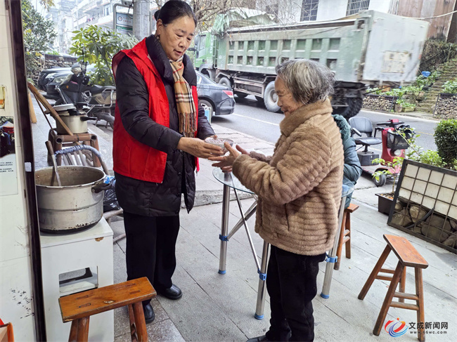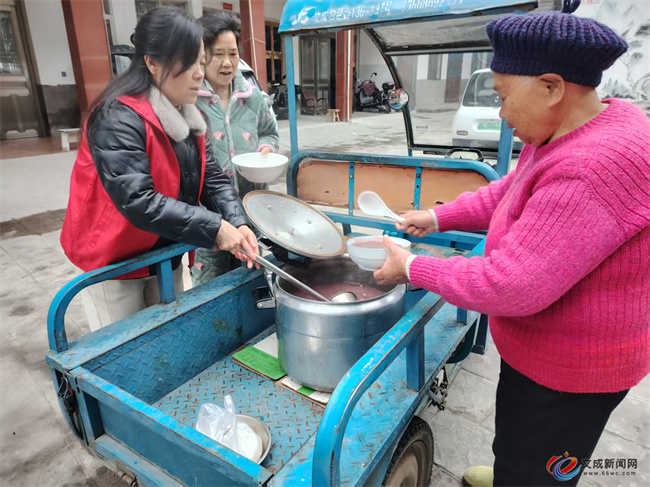 “阿公,趁热喝,不够还能加!”“阿婆,尝尝咱们村自己熬的腊八粥,甜不甜?”工作人员将一碗碗热气腾腾的腊八粥送到老人们手中,与他们亲切交谈,关切询问身体状况和生活需求,叮嘱注意防寒保暖、保重身体。接过腊八粥的老人们脸上洋溢着幸福的笑容,连声道谢。此外,党员和妇女志愿者还骑上三轮车,把一碗碗热气腾腾的腊八粥送到辖区孤寡老人家中,将浓浓的温情传递到群众心间。