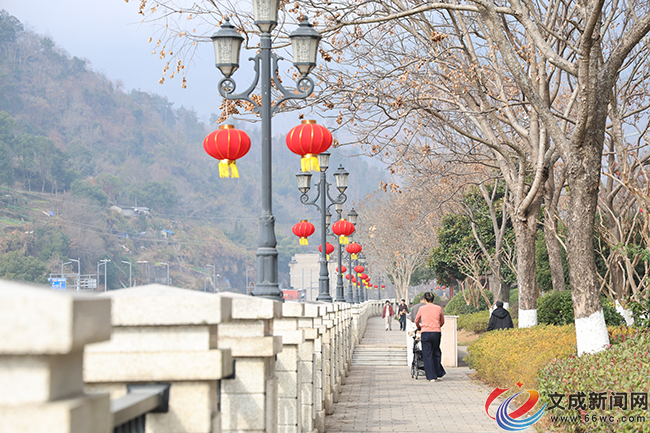 文成新闻网讯(记者 赵焱洁 雷成)随着春节的临近,我县各主干道陆续启动新春氛围布置工作,一盏盏红灯笼错落有致地悬挂于树枝上,将整座县城装点得暖意融融、喜气盎然,成为冬日里一道温暖亮眼的风景线,让市民提前感受到浓浓的新春气息。