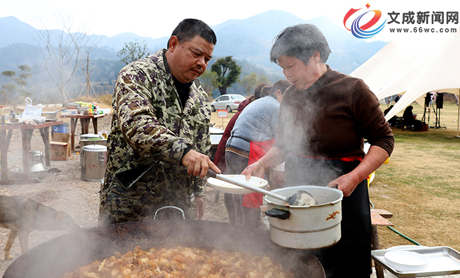 黄坦镇仙人居农庄经理徐爱钗介绍,此次活动已是农庄第三次举办。临近年关游子陆续返乡,农庄特地办起这场活动,希望为返乡的在外游子送上一份童年回忆。相较以往,团队还对菜品等方面做了全面升级,此次也吸引了温州、杭州、宁波等地的不少客人前来,大家品尝过文成本地农家自养的正宗土猪肉后纷纷赞不绝口,不少人直言味道极佳,还有客人表示从没吃过这么好吃的猪肉。