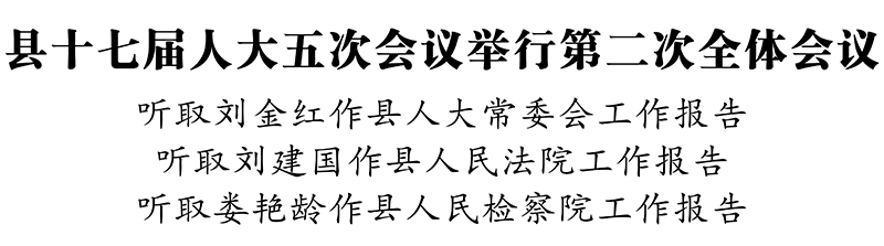 会议听取县人大常委会主任刘金红所作的县人大常委会工作报告;听取县人民法院代院长刘建国所作的县人民法院工作报告;听取县人民检察院检察长娄艳龄所作的县人民检察院工作报告。