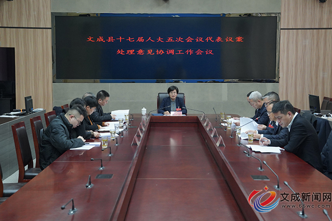 文成新闻网讯(记者 赵焱洁 魏为强)1月30日下午,县十七届人大五次会议举行代表议案处理意见协调工作会议。县人大常委会副主任金一玲主持会议。