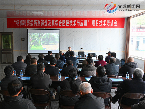 文成新闻网讯(记者 毛薏楠 陈经友 夏晓强)杨梅产业是文成县农业特色支柱产业,种植技术更是位居全省前列。但种植中的一些病虫害防治难题仍然困扰着不少梅农,制约产业健康发展。为此,杨梅科创服务团专门开展“杨梅凋萎病药剂筛选及其综合防控技术与应用”项目技术培训会,把专业的栽培和防控技术送到了种植户的心坎上。