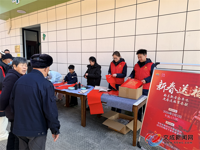 文成新闻网讯(通讯员 林诗慧) 腊月时节,年意渐浓。为弘扬中华优秀传统文化,营造欢乐祥和、文明喜庆的节日氛围,近日,平和乡新时代文明实践所门口暖意融融、翰墨飘香,“迎新春·送春联”主题活动在此热闹举行。活动特邀村中书法爱好者与少年儿童共同挥毫,将新春的祝福凝于笔端,为即将到来的春节增添了浓浓的文化年味。