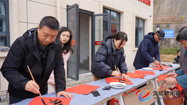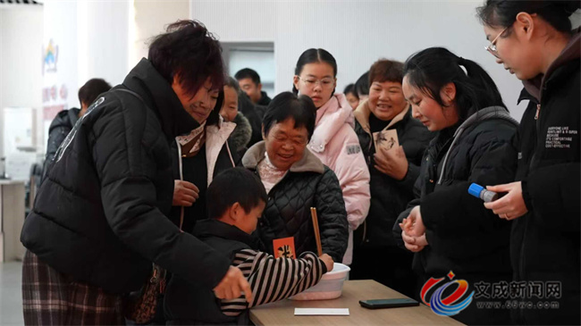 文化礼堂前广场的伴手礼兑换区同样热闹非凡。书法专家现场挥毫,一幅幅饱含墨香的“福”字传递着对新春的诚挚祝福。村民们凭“集福卡”上积累的“福印”,有序兑换寓意吉祥的礼品。活动注重文化浸润与情感交流,让村民在互动中品味传统、收获温情。