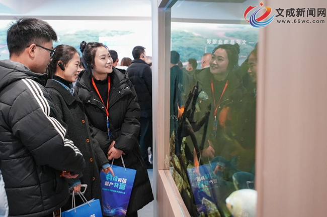 文成新闻网讯(记者 王心怡 王安 陈轩)2月9日,以“科技育苗 蓝产共富”为主题的温州罗氏沼虾优质种苗推介会在文成县巨屿镇成功举办。省市农业农村部门领导、文成县领导及有关单位、行业专家、养殖主体、经销商、金融保险机构等130多位代表齐聚现场,共探罗氏沼虾产业高质量发展路径,现场引得省内外26家经营主体完成意向签约,虾苗预订量总计达3.5亿尾,为浙南淡水渔业高质量发展注入强劲动能。