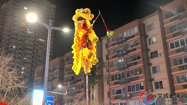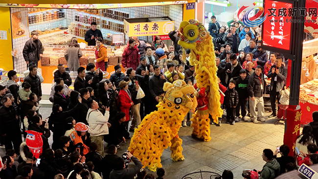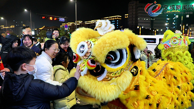 文成春市舞狮送福 烟火人间解锁新春好彩头