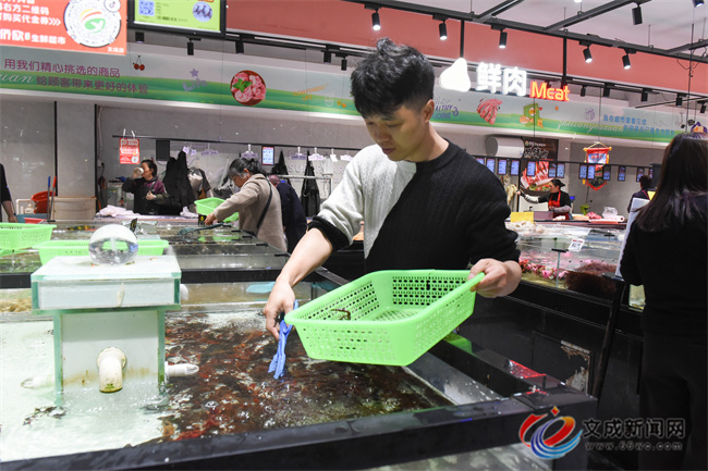 在侨欣生鲜超市,小龙虾售卖区受到不少顾客的青睐。与往年相比,今年首批上市的小龙虾价格更为亲民,多数商家售价为30多元一斤,打破了往年早期小龙虾价格偏高的局面,让市民早早就能实现“吃虾自由”。