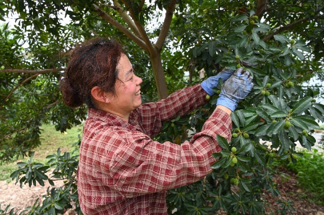 基地负责人吴士荣一边忙碌,一边向记者透露管护诀窍:当前杨梅正是疏果的最佳节点,疏果要遵循“上稀下密、通风透光”的原则,摘除下部弱势果实,每个枝头只保留一颗顶部健壮果,如同给果树“减负提质”,把养分集中供给优质果实,才能让杨梅个头更大、品相更佳、口感更好。