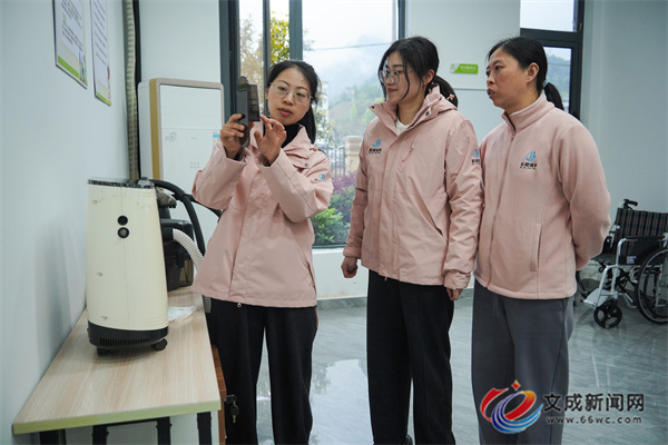 在大峃镇一位失能老人家中,护理人员正规范开展擦洗、测血压、肢体按摩等照护服务,让老人居家就能享受专业照料,也为家属减轻了负担。