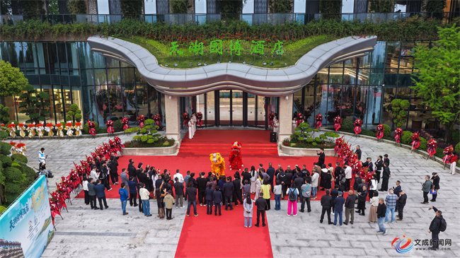 开业启动仪式现场气氛热烈。舞狮点睛、醒狮表演、开启“发财门”等环节依次上演,寓意开门纳福、生意兴隆。仪式尾声,嘉宾与市民代表一同走进酒店,沉浸式参观园林景观、特色客房及各类配套区域,亲身感受生态康养与园林旅居相融共生的独特魅力。